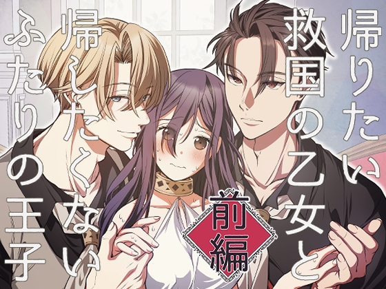 『帰りたい救国の乙女と帰したくないふたりの王子<前編>』は、「ヤシの木陰で猫とお昼寝」作成のエロ漫画で、DLsiteで配信されています